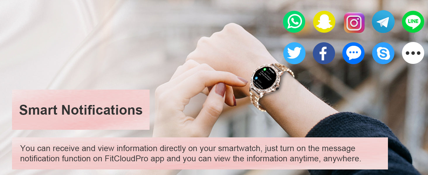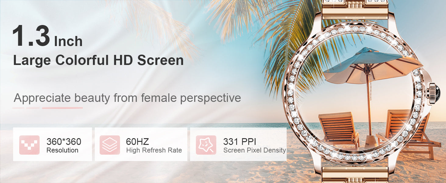 - Ultra-thin design: only 7 mm, combining comfort and sophistication in one of the slimmest women’s smartwatches available