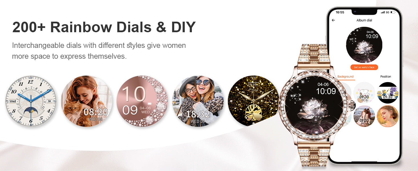 - Personalized watch faces: select from 150+ unique dials or upload your own photos for a truly individual style
